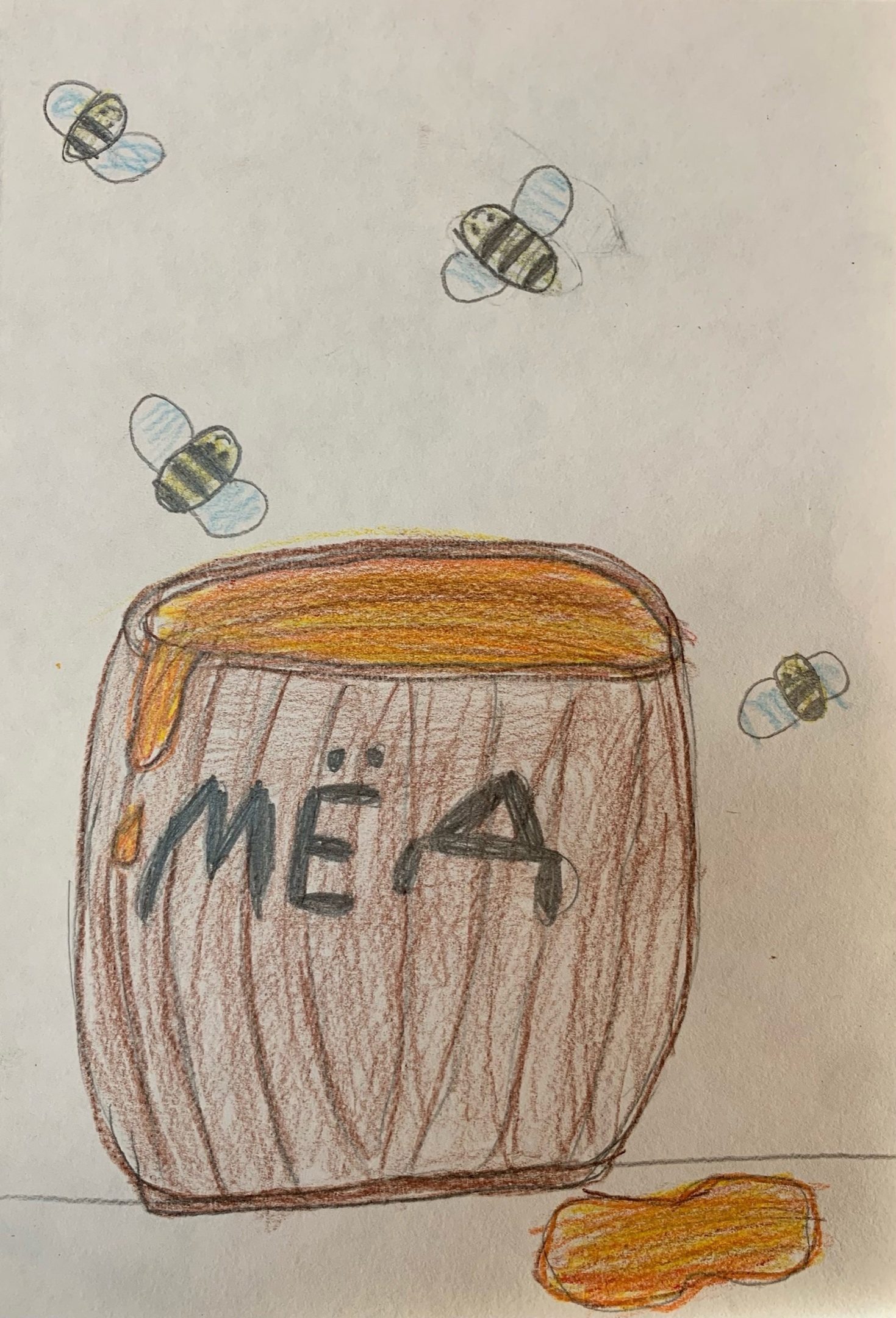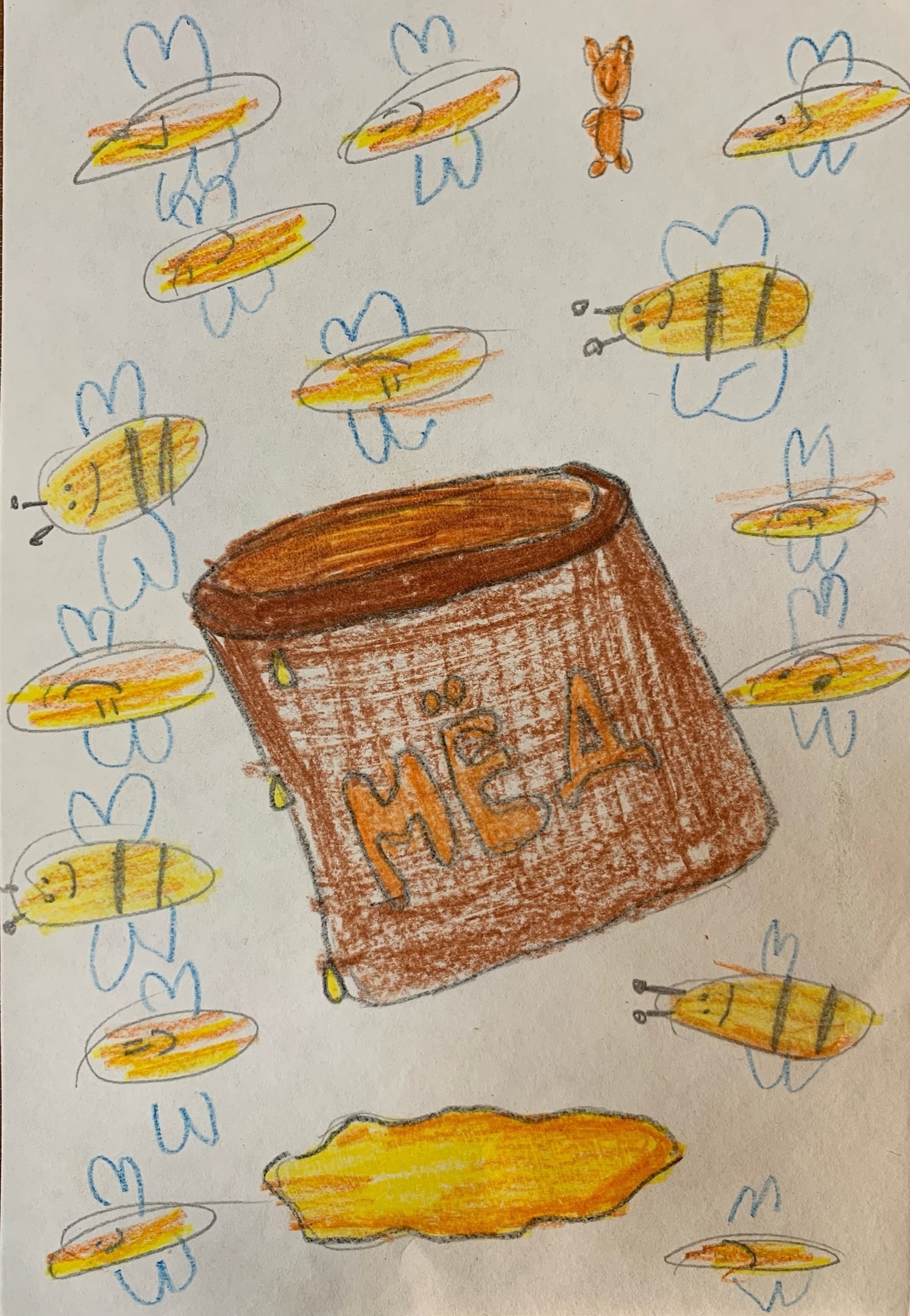 Разгадывание загадок по теме мероприятия и просмотр мультфильма о доброй и отзывчивой пчелке Майе вдохновили ребят на творчество: из цветной бумаги и картона создали «Медоносную трудолюбивую пчелку» и «Медовые рисунки».